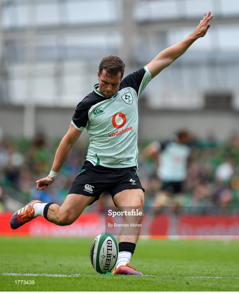 10 August 2019; Jack Carty of Ireland kicks a conversion during the Guinness Summer Series 2019 match between Ireland and Italy at the Aviva Stadium in Dublin. Photo by Brendan Moran/Sportsfile