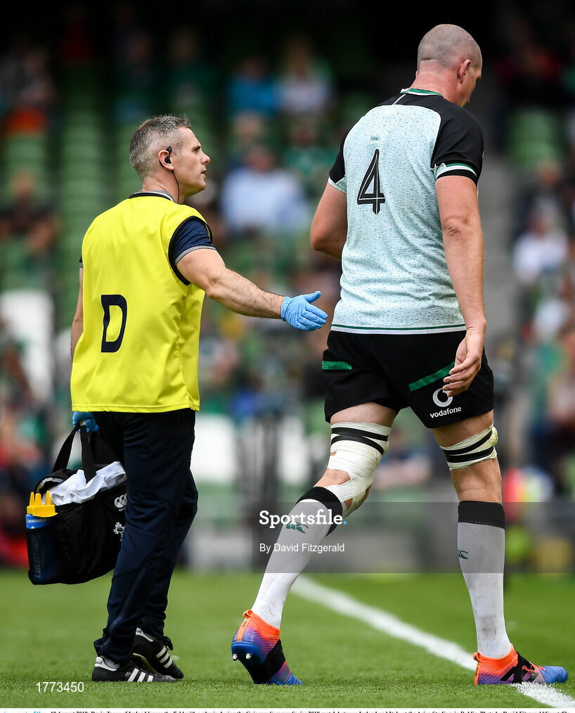 10 August 2019; Devin Toner of Ireland leaves the field with a physio during the Guinness Summer Series 2019 match between Ireland and Italy at the Aviva Stadium in Dublin. Photo by David Fitzgerald/Sportsfile