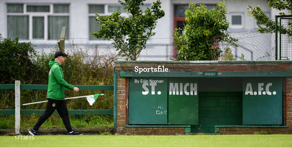 10 August 2019; Pat Flood of St. Michael’s putting out the corner flags ahead of the Extra.ie FAI Cup First Round match between St. Michael’s and Glengad United at Cooke Park in Tipperary. Photo by Eóin Noonan/Sportsfile