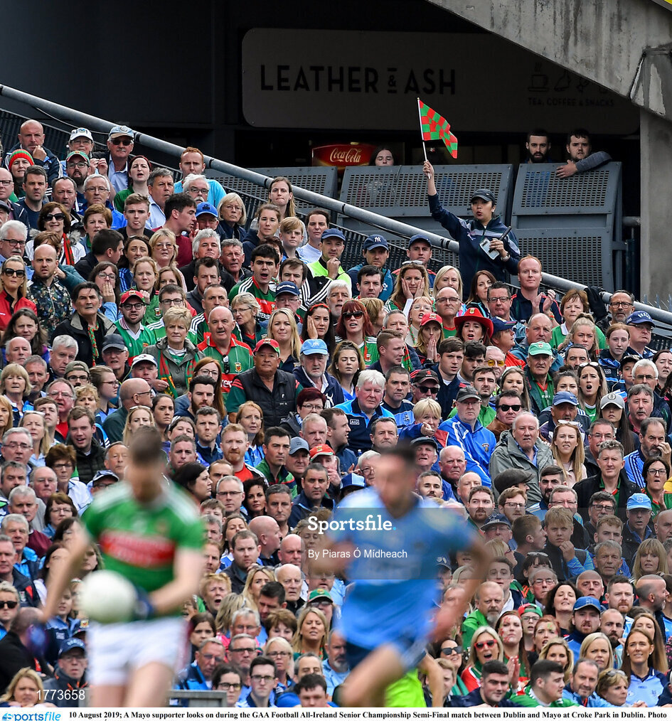10 August 2019; A Mayo supporter looks on during the GAA Football All-Ireland Senior Championship Semi-Final match between Dublin and Mayo at Croke Park in Dublin. Photo by Piaras Ó Mídheach/Sportsfile