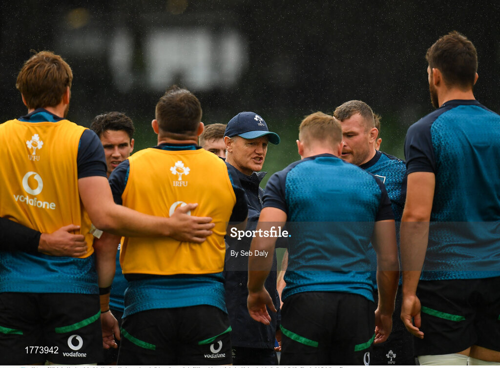 10 August 2019; Ireland head coach Joe Schmidt talks to his players prior to the Guinness Summer Series 2019 match between Ireland and Italy at the Aviva Stadium in Dublin. Photo by Seb Daly/Sportsfile