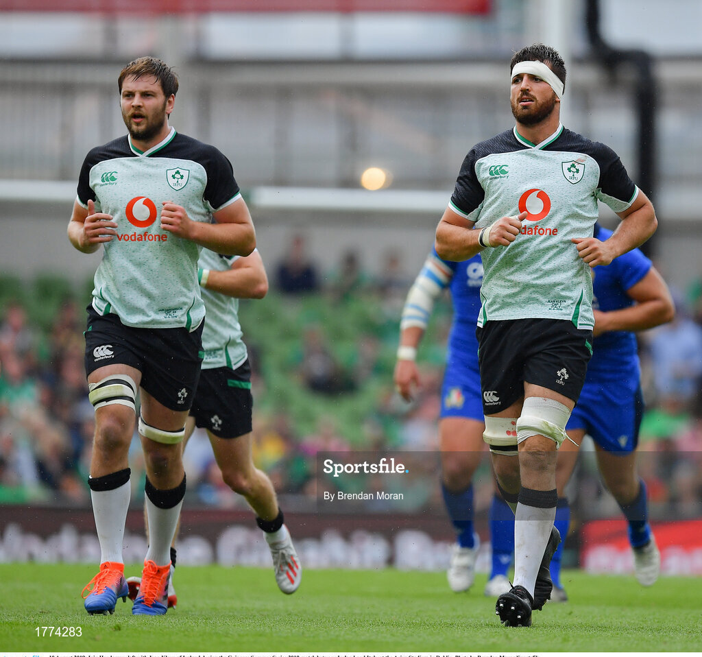 10 August 2019; Iain Henderson, left with Jean Kleyn of Ireland during the Guinness Summer Series 2019 match between Ireland and Italy at the Aviva Stadium in Dublin. Photo by Brendan Moran/Sportsfile