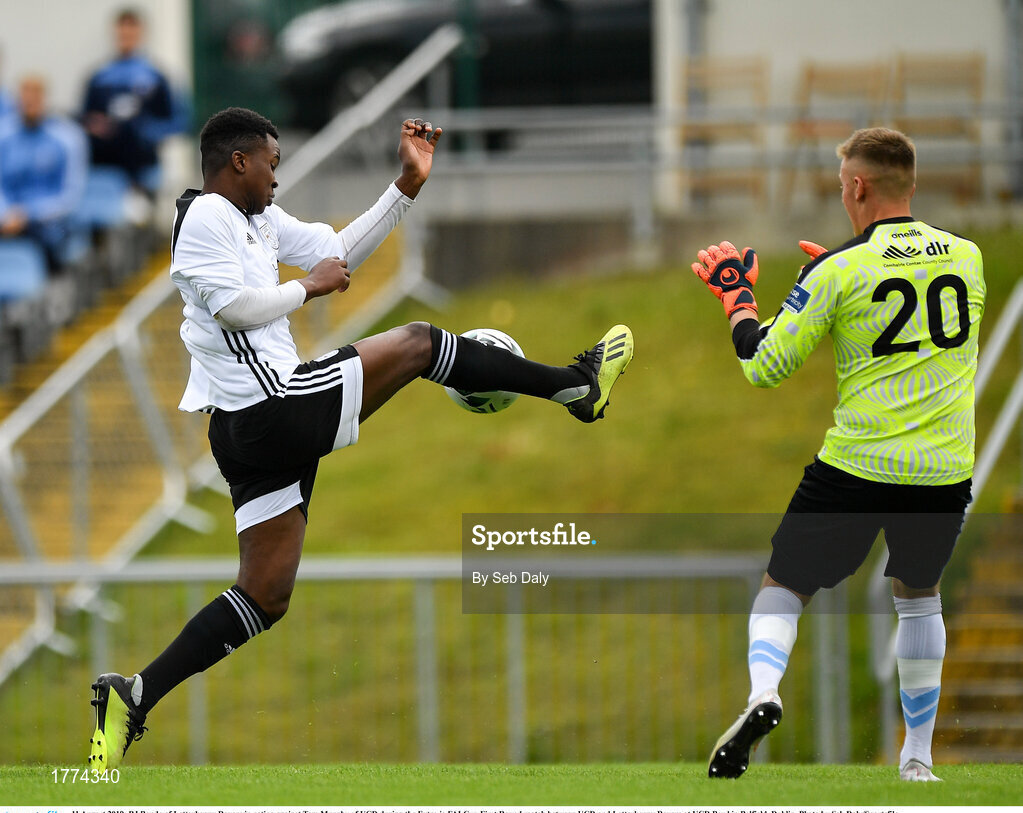 11 August 2019; BJ Banda of Letterkenny Rovers in action against Tom Murphy of UCD during the Extra.ie FAI Cup First Round match between UCD and Letterkenny Rovers at UCD Bowl in Belfield, Dublin. Photo by Seb Daly/Sportsfile