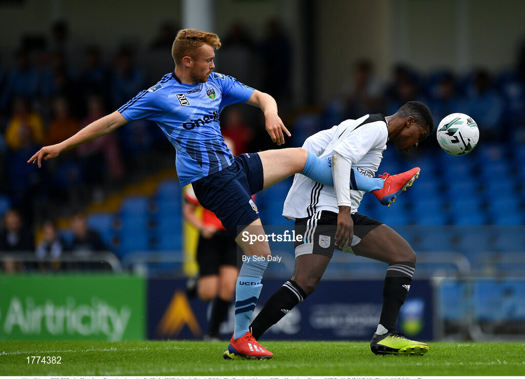 11 August 2019; BJ Banda of Letterkenny Rovers in action against Paul Doyle of UCD during the Extra.ie FAI Cup First Round match between UCD and Letterkenny Rovers at UCD Bowl in Belfield, Dublin. Photo by Seb Daly/Sportsfile