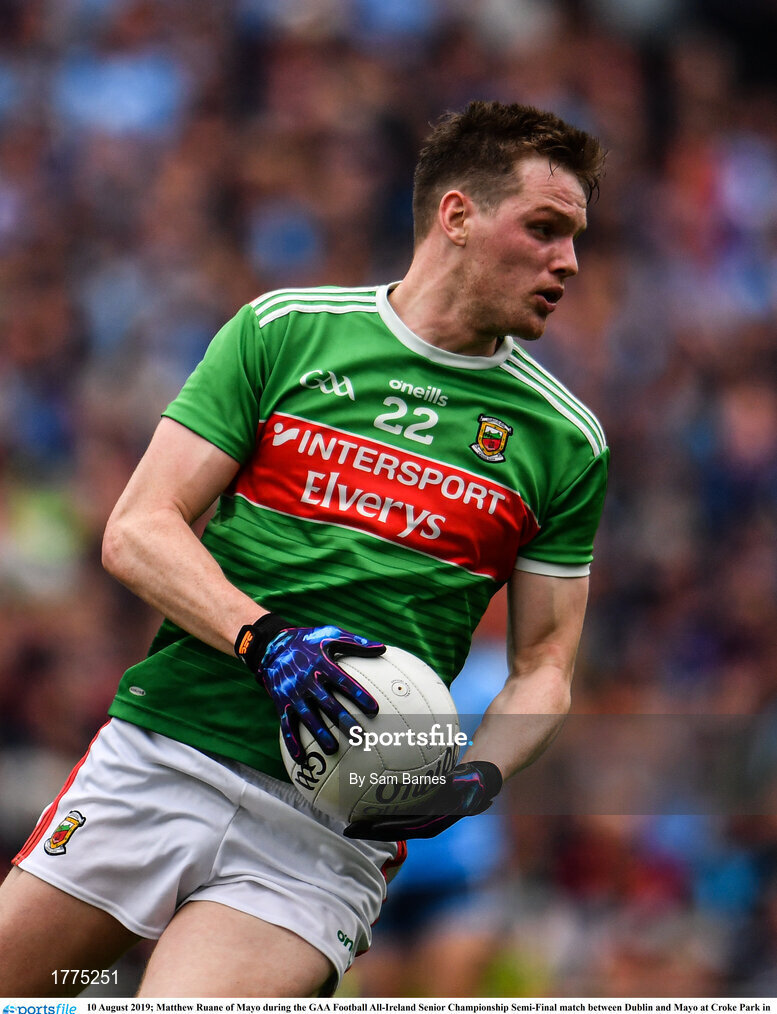 10 August 2019; Matthew Ruane of Mayo during the GAA Football All-Ireland Senior Championship Semi-Final match between Dublin and Mayo at Croke Park in Dublin. Photo by Sam Barnes/Sportsfile