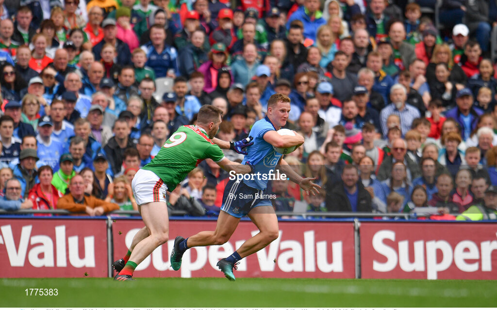 10 August 2019; Ciaran Kilkenny of Dublin in action against Seamus O'Shea of Mayo during the GAA Football All-Ireland Senior Championship Semi-Final match between Dublin and Mayo at Croke Park in Dublin. Photo by Sam Barnes/Sportsfile