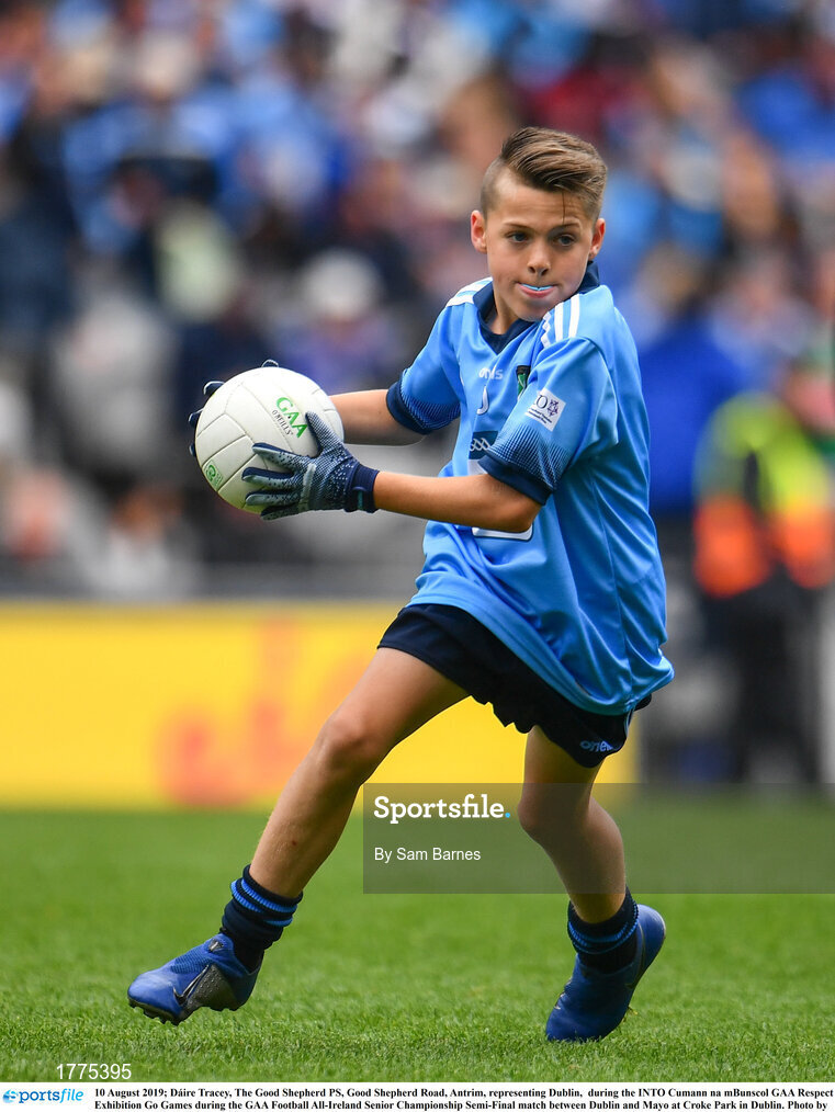 10 August 2019; Dáire Tracey, The Good Shepherd PS, Good Shepherd Road, Antrim, representing Dublin, during the INTO Cumann na mBunscol GAA Respect Exhibition Go Games during the GAA Football All-Ireland Senior Championship Semi-Final match between Dublin and Mayo at Croke Park in Dublin. Photo by Sam Barnes/Sportsfile