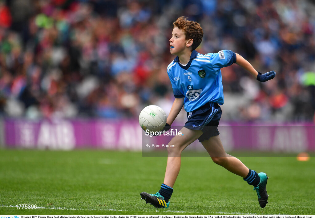 10 August 2019; Cormac Flynn, Scoil Mhuire, Newtownforbes, Longford, representing Dublin, during the INTO Cumann na mBunscol GAA Respect Exhibition Go Games during the GAA Football All-Ireland Senior Championship Semi-Final match between Dublin and Mayo at Croke Park in Dublin. Photo by Sam Barnes/Sportsfile