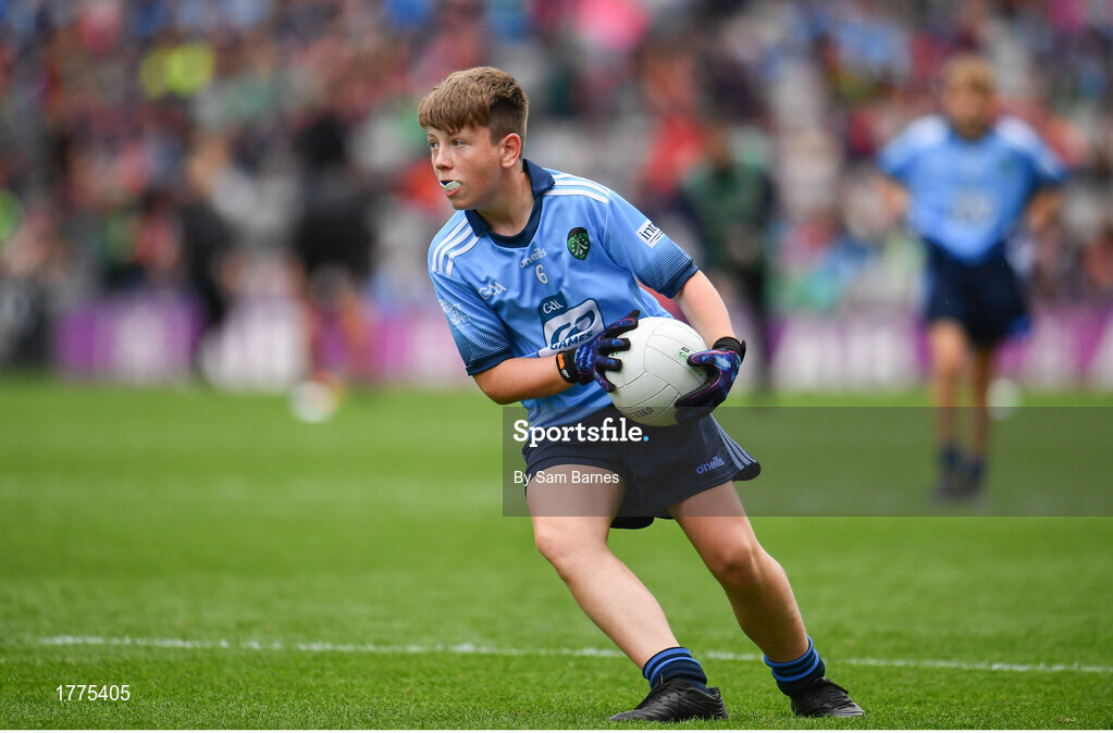 10 August 2019; Gavin Murphy, Scoil Mhuire Naofa, Rhode, Offaly, representing Dublin, during the INTO Cumann na mBunscol GAA Respect Exhibition Go Games during the GAA Football All-Ireland Senior Championship Semi-Final match between Dublin and Mayo at Croke Park in Dublin. Photo by Sam Barnes/Sportsfile