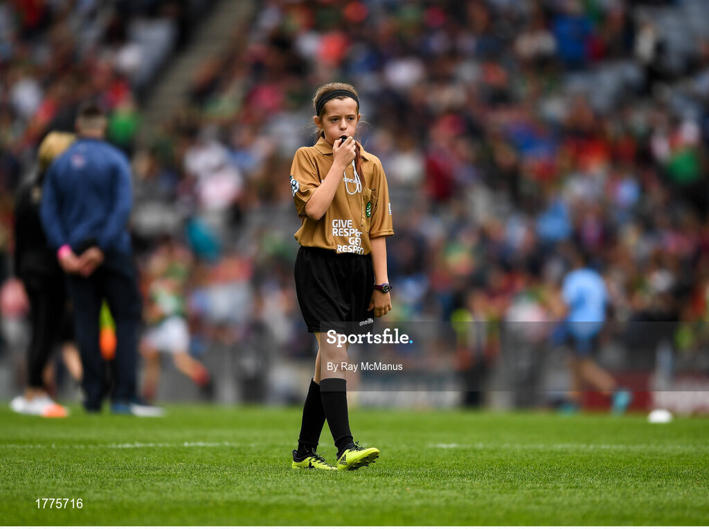 10 August 2019; Referee Amy Dalton, St Mary’s Parish PS, Drogheda, Louth, during the INTO Cumann na mBunscol GAA Respect Exhibition Go Games during the GAA Football All-Ireland Senior Championship Semi-Final match between Dublin and Mayo at Croke Park in Dublin. Photo by Ray McManus/Sportsfile