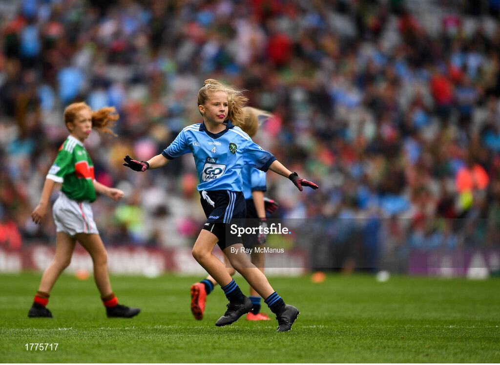 10 August 2019; Isobel Cronin, Clonegal NS, Clonegal, Enniscorthy, Wexford, representing Dublin, during the INTO Cumann na mBunscol GAA Respect Exhibition Go Games during the GAA Football All-Ireland Senior Championship Semi-Final match between Dublin and Mayo at Croke Park in Dublin. Photo by Ray McManus/Sportsfile
