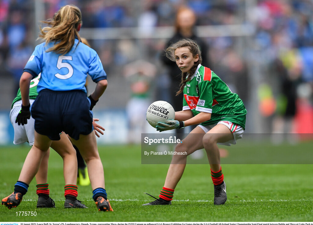 10 August 2019; Laura Duff, St. Teresa’s PS, Loughmacrory, Omagh, Tyrone, representing Mayo, during the INTO Cumann na mBunscol GAA Respect Exhibition Go Games during the GAA Football All-Ireland Senior Championship Semi-Final match between Dublin and Mayo at Croke Park in Dublin. Photo by Piaras Ó Mídheach/Sportsfile