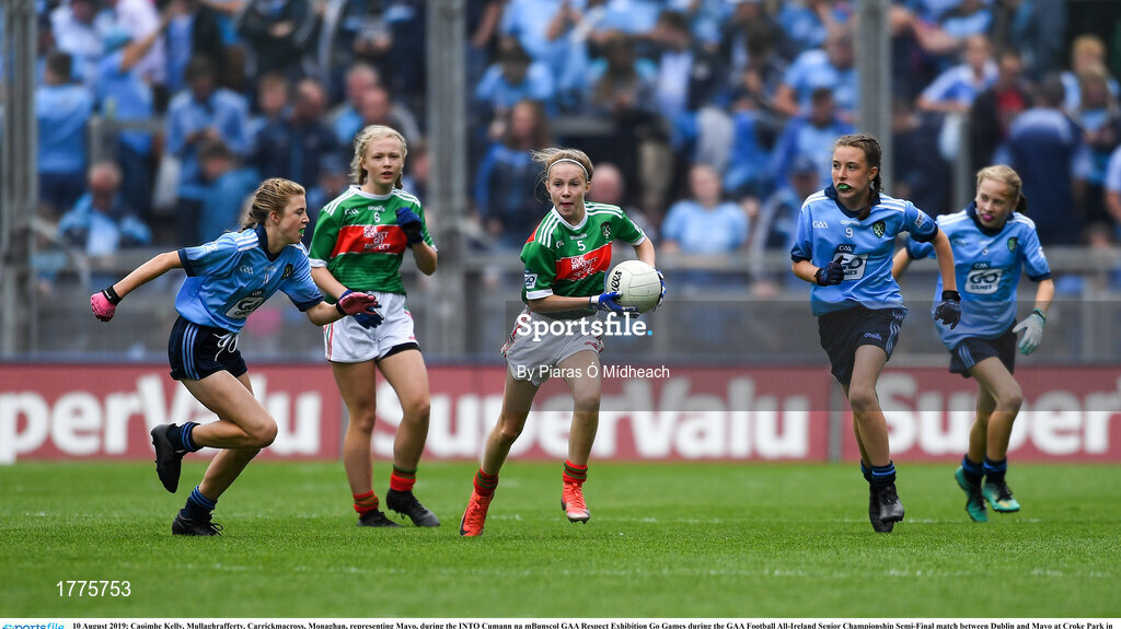 10 August 2019; Caoimhe Kelly, Mullaghrafferty, Carrickmacross, Monaghan, representing Mayo, during the INTO Cumann na mBunscol GAA Respect Exhibition Go Games during the GAA Football All-Ireland Senior Championship Semi-Final match between Dublin and Mayo at Croke Park in Dublin. Photo by Piaras Ó Mídheach/Sportsfile