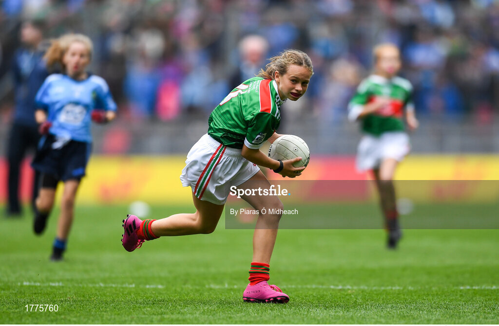 10 August 2019; Ava Connolly, Rathgormack NS, Rathgormack, Waterford, representing Mayo, during the INTO Cumann na mBunscol GAA Respect Exhibition Go Games during the GAA Football All-Ireland Senior Championship Semi-Final match between Dublin and Mayo at Croke Park in Dublin. Photo by Piaras Ó Mídheach/Sportsfile