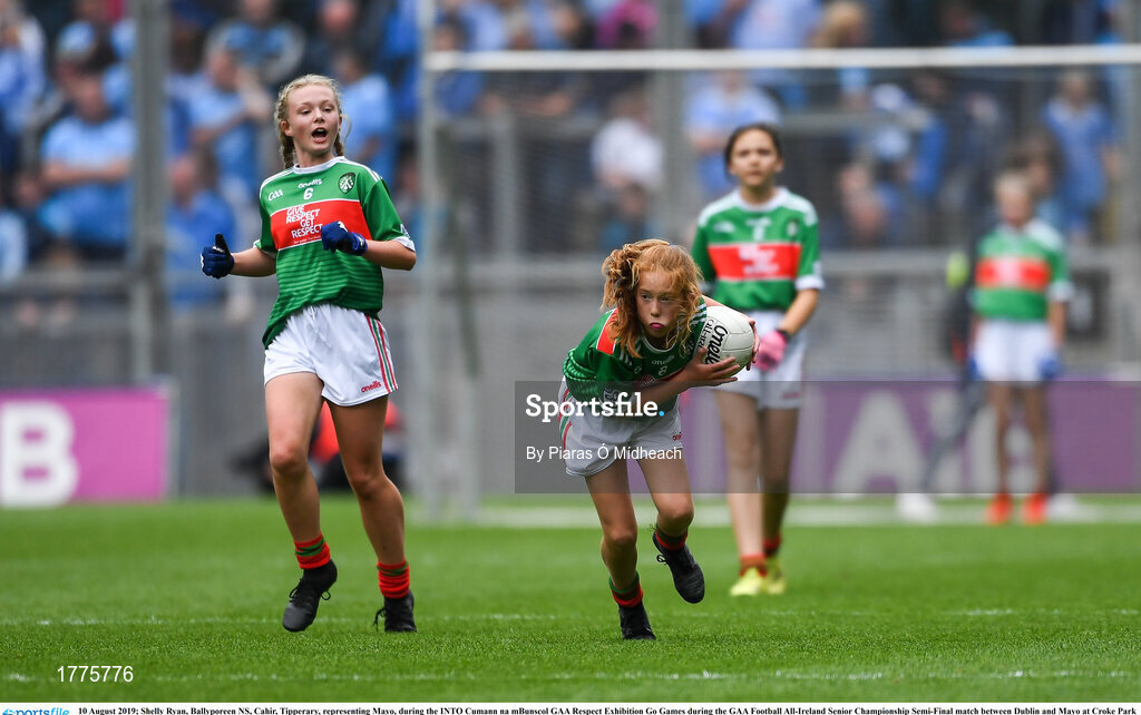 10 August 2019; Shelly Ryan, Ballyporeen NS, Cahir, Tipperary, representing Mayo, during the INTO Cumann na mBunscol GAA Respect Exhibition Go Games during the GAA Football All-Ireland Senior Championship Semi-Final match between Dublin and Mayo at Croke Park in Dublin. Photo by Piaras Ó Mídheach/Sportsfile