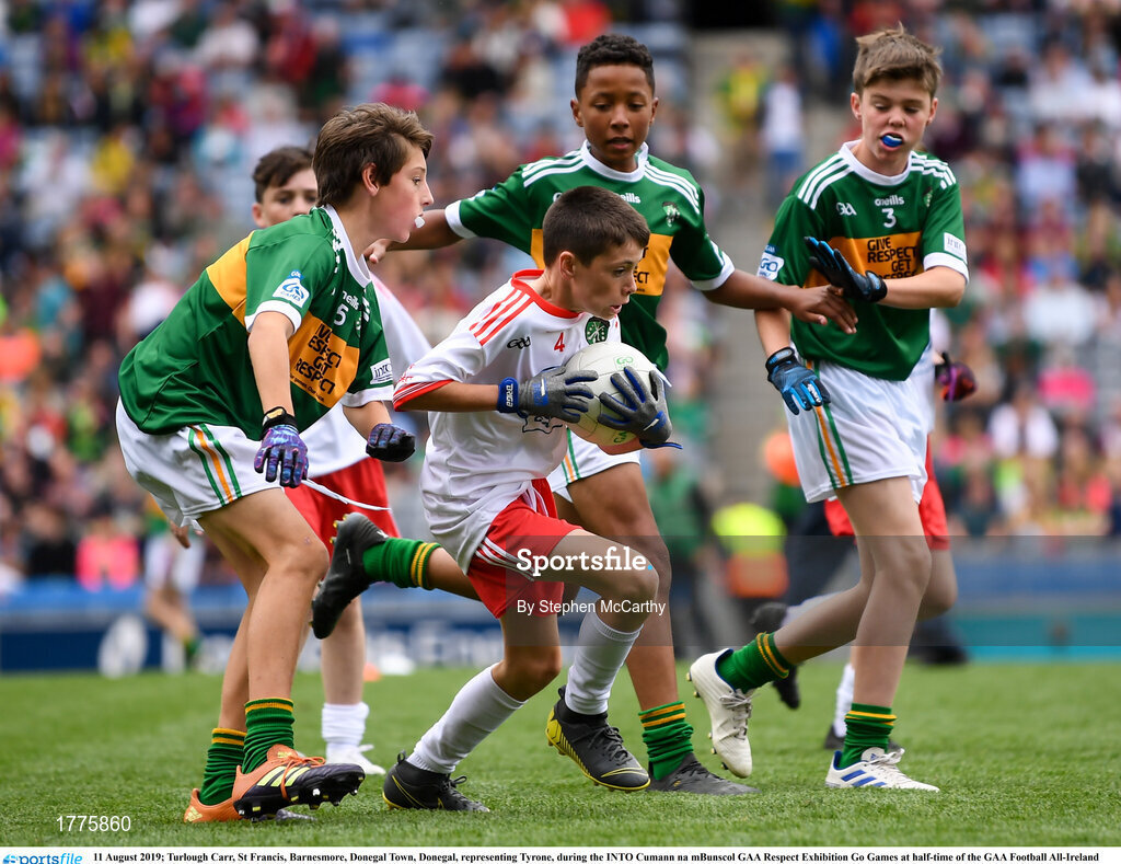 11 August 2019; Turlough Carr, St Francis, Barnesmore, Donegal Town, Donegal, representing Tyrone, during the INTO Cumann na mBunscol GAA Respect Exhibition Go Games at half-time of the GAA Football All-Ireland Senior Championship Semi-Final match between Kerry and Tyrone at Croke Park in Dublin. Photo by Stephen McCarthy/Sportsfile