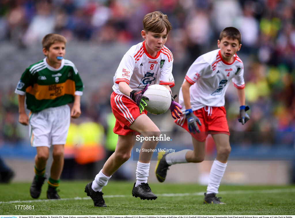 11 August 2019; Conor Bodkin, St. Patricks PS, Tuam, Galway, representing Tyrone, during the INTO Cumann na mBunscol GAA Respect Exhibition Go Games at half-time of the GAA Football All-Ireland Senior Championship Semi-Final match between Kerry and Tyrone at Croke Park in Dublin. Photo by Stephen McCarthy/Sportsfile