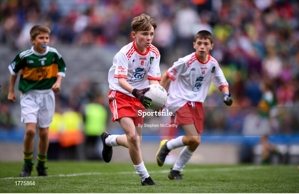 11 August 2019; Conor Bodkin, St. Patricks PS, Tuam, Galway, representing Tyrone, during the INTO Cumann na mBunscol GAA Respect Exhibition Go Games at half-time of the GAA Football All-Ireland Senior Championship Semi-Final match between Kerry and Tyrone at Croke Park in Dublin. Photo by Stephen McCarthy/Sportsfile