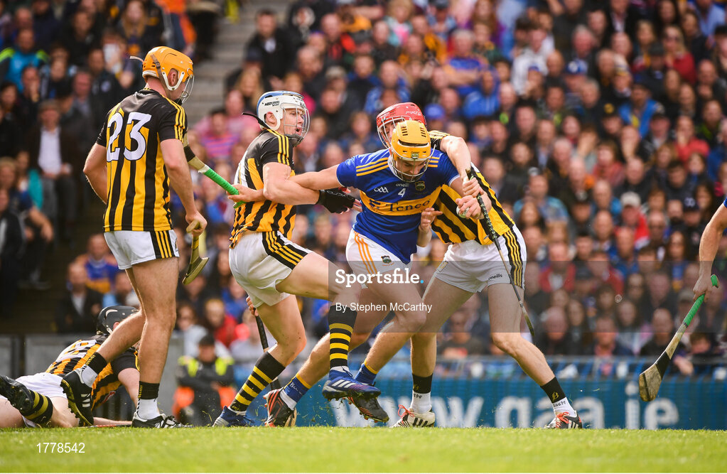 18 August 2019; Ronan Maher of Tipperary in against Billy Ryan, James Maher and TJ Reid of Kilkenny during the GAA Hurling All-Ireland Senior Championship Final match between Kilkenny and Tipperary at Croke Park in Dublin. Photo by Stephen McCarthy/Sportsfile