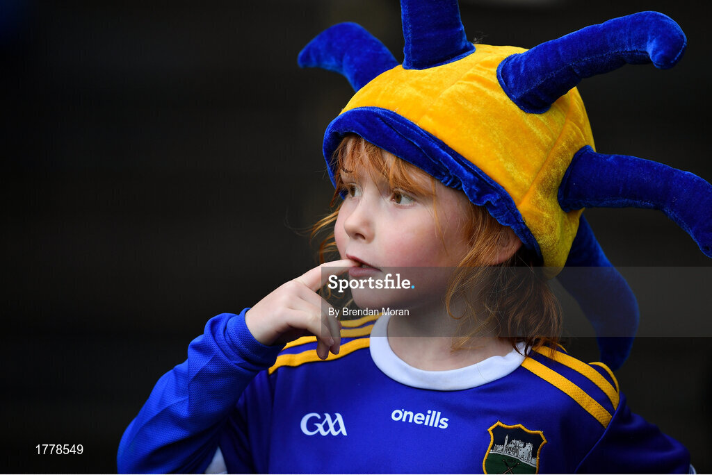 18 August 2019; A young Tipperary supporter looks on during the GAA Hurling All-Ireland Senior Championship Final match between Kilkenny and Tipperary at Croke Park in Dublin. Photo by Brendan Moran/Sportsfile