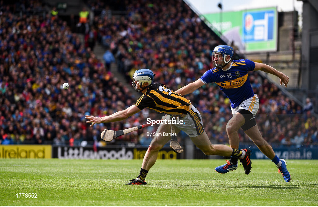 18 August 2019; Huw Lawlor of Kilkenny in action against John McGrath of Tipperary during the GAA Hurling All-Ireland Senior Championship Final match between Kilkenny and Tipperary at Croke Park in Dublin. Photo by Sam Barnes/Sportsfile