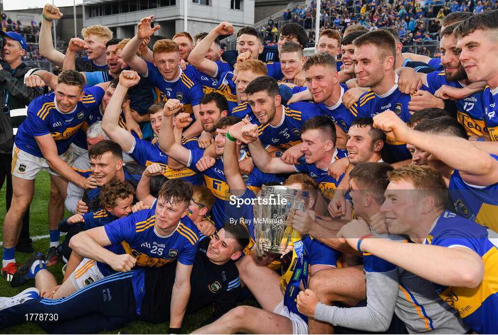 18 August 2019; Tipperary squad members celebrate with the Liam MacCarthy Cup after the GAA Hurling All-Ireland Senior Championship Final match between Kilkenny and Tipperary at Croke Park in Dublin. Photo by Ray McManus/Sportsfile