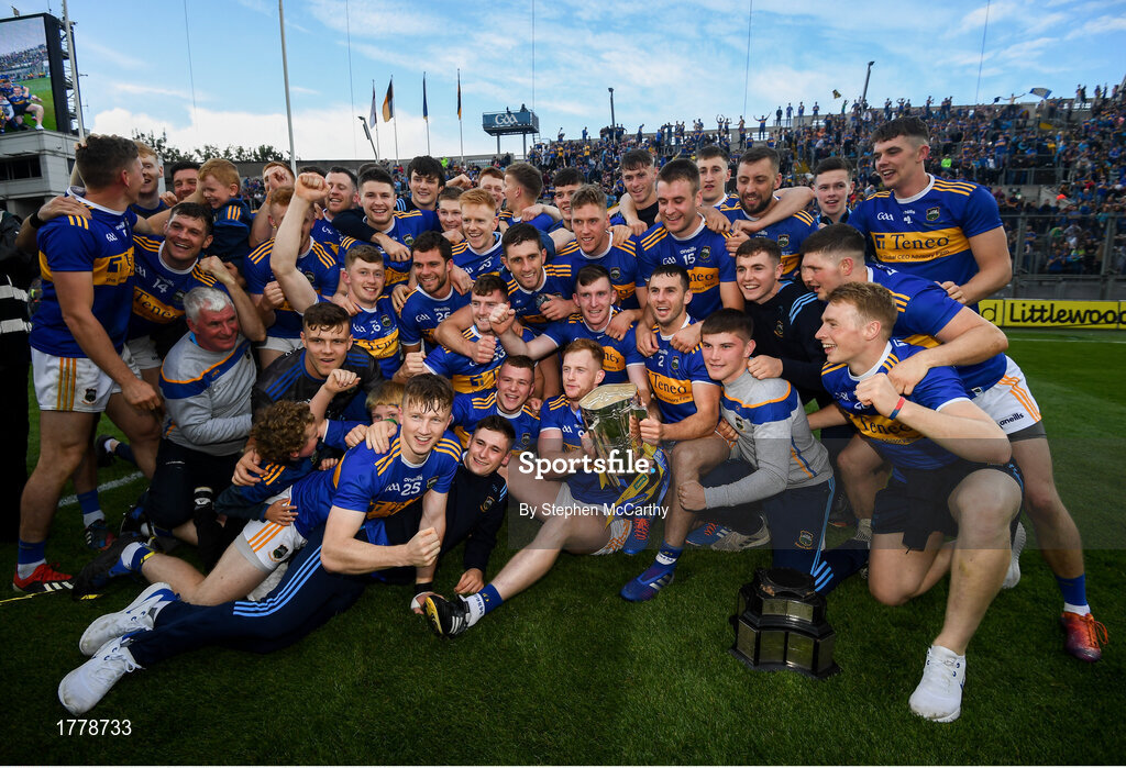18 August 2019; The Tipperary Team celebrate with the Liam MacCarthy cup, after the GAA Hurling All-Ireland Senior Championship Final match between Kilkenny and Tipperary at Croke Park in Dublin. Photo by Stephen McCarthy/Sportsfile