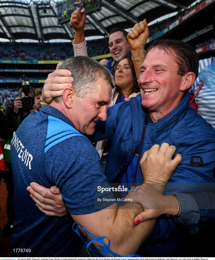 18 August 2019; Tipperary manager Liam Sheedy is congratulated by supporters following the GAA Hurling All-Ireland Senior Championship Final match between Kilkenny and Tipperary at Croke Park in Dublin. Photo by Stephen McCarthy/Sportsfile