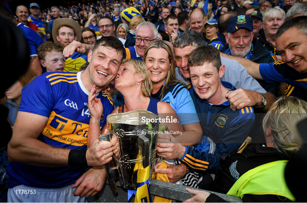18 August 2019; Séamus Callanan of Tipperary celebrates with his family and the Liam MacCarthy cup following the GAA Hurling All-Ireland Senior Championship Final match between Kilkenny and Tipperary at Croke Park in Dublin. Photo by Stephen McCarthy/Sportsfile