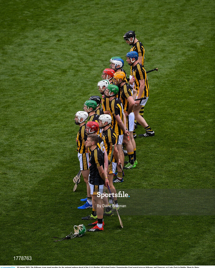 18 August 2019; The Kilkenny team stand together for the national anthem ahead of the GAA Hurling All-Ireland Senior Championship Final match between Kilkenny and Tipperary at Croke Park in Dublin. Photo by Daire Brennan/Sportsfile