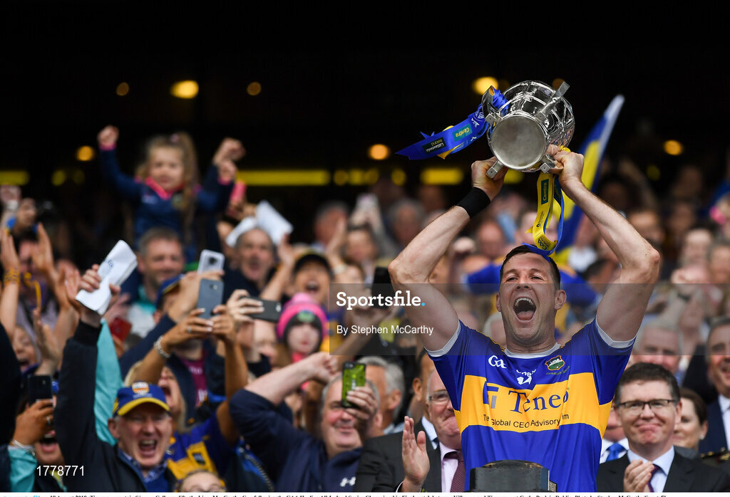 18 August 2019; Tipperary captain Séamus Callanan lifts the Liam MacCarthy Cup following the GAA Hurling All-Ireland Senior Championship Final match between Kilkenny and Tipperary at Croke Park in Dublin. Photo by Stephen McCarthy/Sportsfile