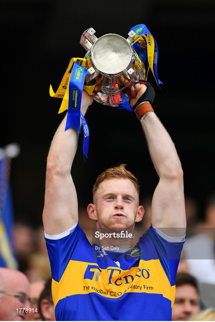 18 August 2019; Michael Breen of Tipperary lifts the Liam MacCarthy cup following the GAA Hurling All-Ireland Senior Championship Final match between Kilkenny and Tipperary at Croke Park in Dublin. Photo by Seb Daly/Sportsfile