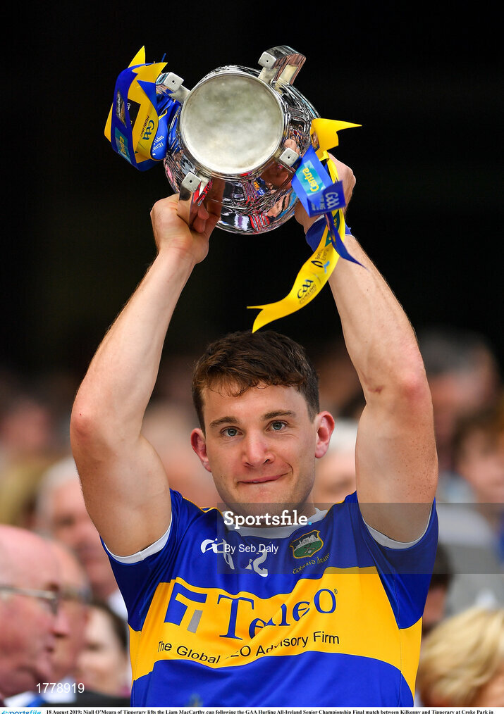 18 August 2019; Niall O’Meara of Tipperary lifts the Liam MacCarthy cup following the GAA Hurling All-Ireland Senior Championship Final match between Kilkenny and Tipperary at Croke Park in Dublin. Photo by Seb Daly/Sportsfile