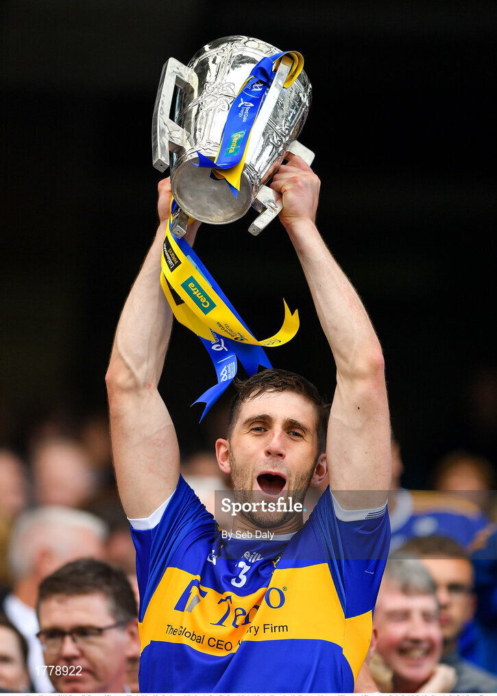 18 August 2019; Barry Heffernan of Tipperary lifts the Liam MacCarthy cup following the GAA Hurling All-Ireland Senior Championship Final match between Kilkenny and Tipperary at Croke Park in Dublin. Photo by Seb Daly/Sportsfile