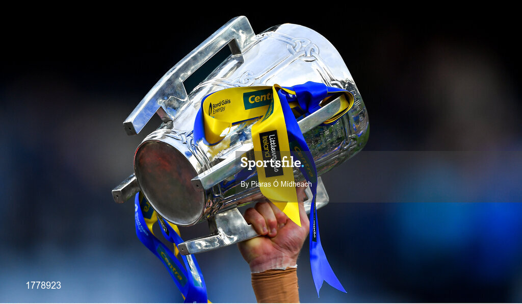 18 August 2019; The Liam MacCarthy Cup during the celebrations after the GAA Hurling All-Ireland Senior Championship Final match between Kilkenny and Tipperary at Croke Park in Dublin. Photo by Piaras Ó Mídheach/Sportsfile