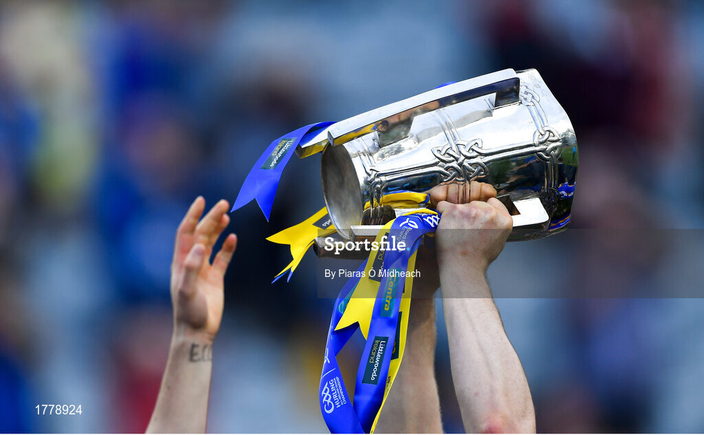 18 August 2019; The Liam MacCarthy Cup during the celebrations after the GAA Hurling All-Ireland Senior Championship Final match between Kilkenny and Tipperary at Croke Park in Dublin. Photo by Piaras Ó Mídheach/Sportsfile