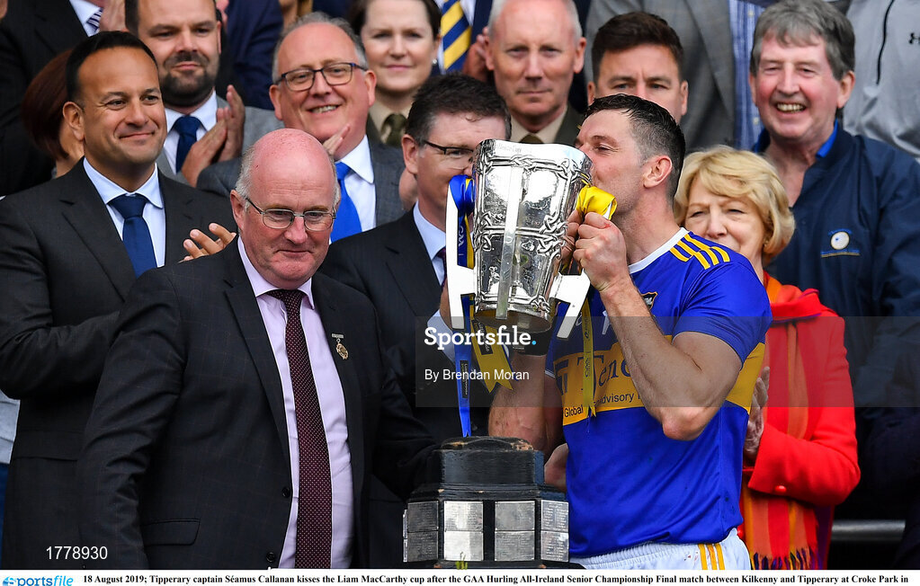 18 August 2019; Tipperary captain Séamus Callanan kisses the Liam MacCarthy cup after the GAA Hurling All-Ireland Senior Championship Final match between Kilkenny and Tipperary at Croke Park in Dublin. Photo by Brendan Moran/Sportsfile