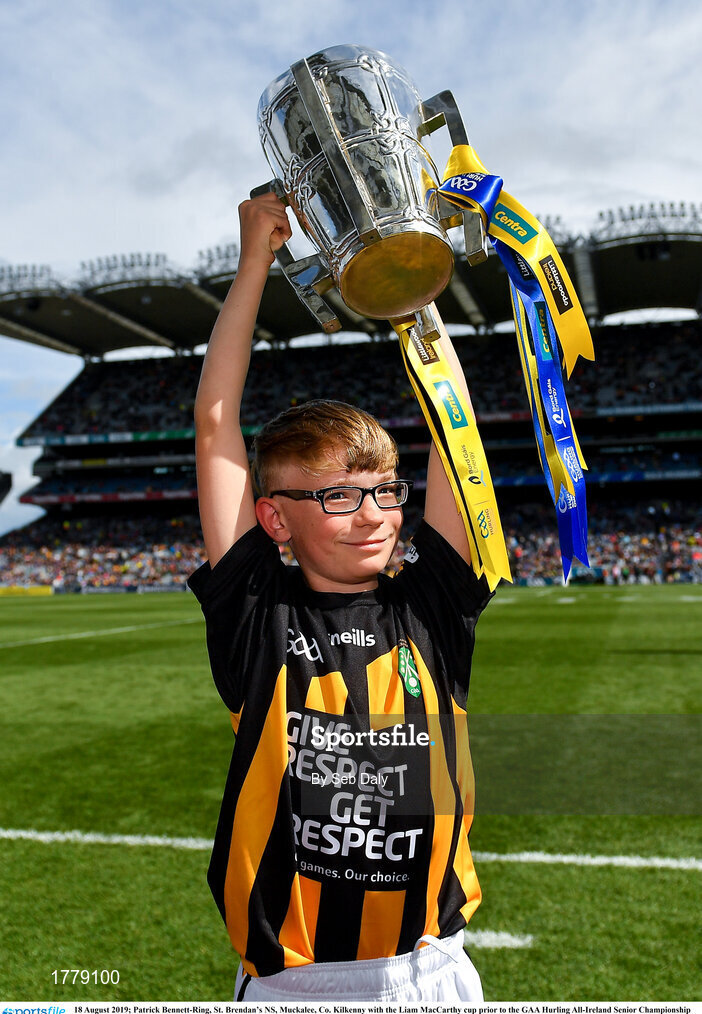 18 August 2019; Patrick Bennett-Ring, St. Brendan’s NS, Muckalee, Co. Kilkenny with the Liam MacCarthy cup prior to the GAA Hurling All-Ireland Senior Championship Final match between Kilkenny and Tipperary at Croke Park in Dublin. Photo by Seb Daly/Sportsfile