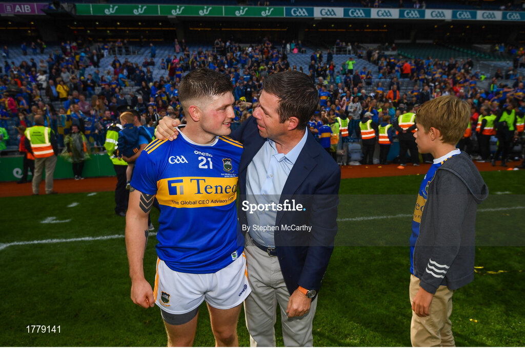 18 August 2019; Tipperary sponsor Declan Kelly, CEO, Teneo, with Willie Connors following the GAA Hurling All-Ireland Senior Championship Final match between Kilkenny and Tipperary at Croke Park in Dublin. Photo by Stephen McCarthy/Sportsfile
