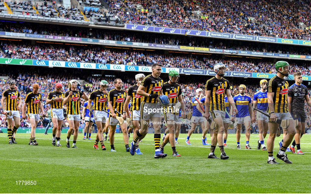 18 August 2019; Kilkenny captain TJ Reid joins the parade late before the GAA Hurling All-Ireland Senior Championship Final match between Kilkenny and Tipperary at Croke Park in Dublin. Photo by Piaras Ó Mídheach/Sportsfile