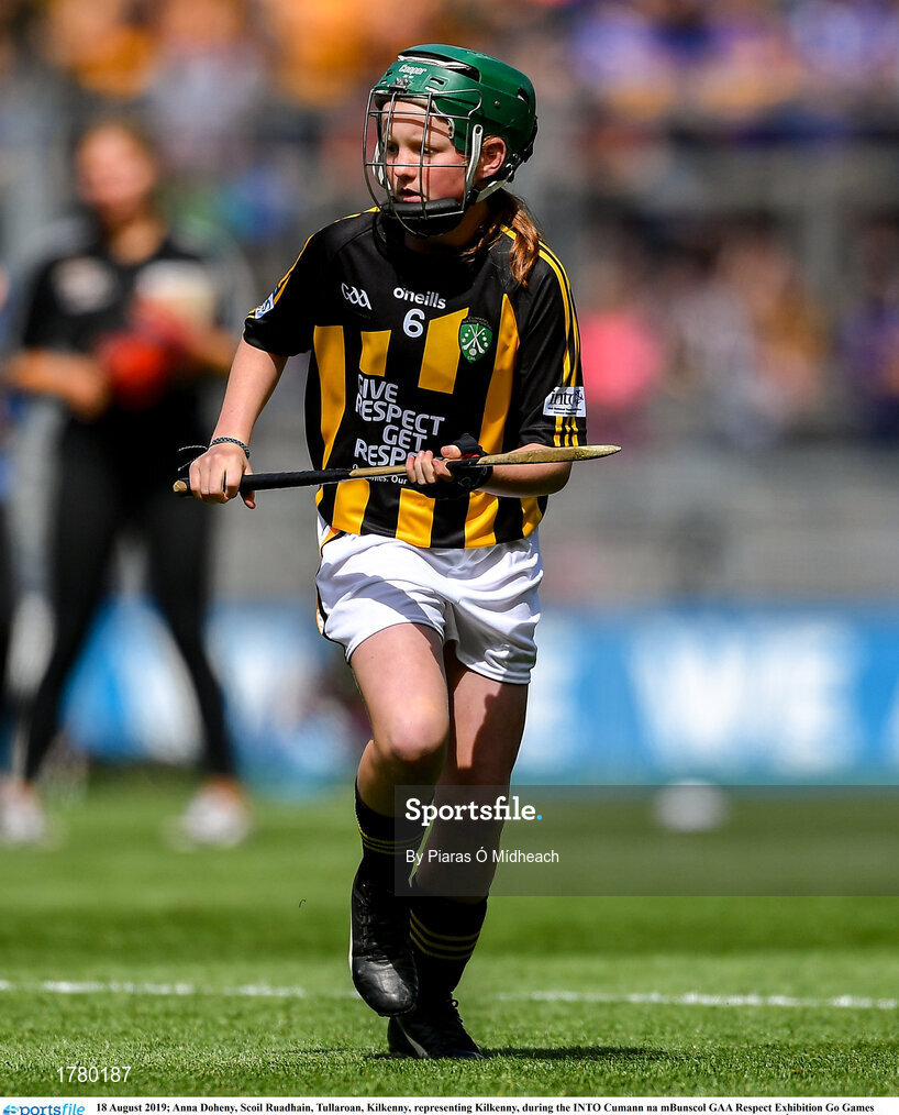 18 August 2019; Anna Doheny, Scoil Ruadhain, Tullaroan, Kilkenny, representing Kilkenny, during the INTO Cumann na mBunscol GAA Respect Exhibition Go Games prior to the GAA Hurling All-Ireland Senior Championship Final match between Kilkenny and Tipperary at Croke Park in Dublin. Photo by Piaras Ó Mídheach/Sportsfile