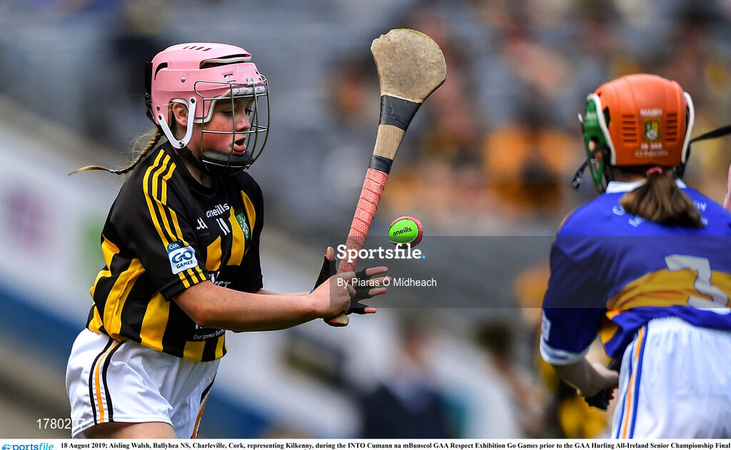 18 August 2019; Aisling Walsh, Ballyhea NS, Charleville, Cork, representing Kilkenny, during the INTO Cumann na mBunscol GAA Respect Exhibition Go Games prior to the GAA Hurling All-Ireland Senior Championship Final match between Kilkenny and Tipperary at Croke Park in Dublin. Photo by Piaras Ó Mídheach/Sportsfile