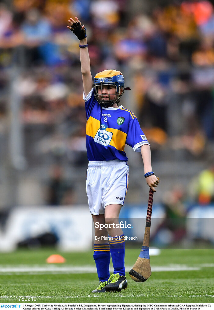 18 August 2019; Catherine Moohan, St. Patrick’s PS, Dungannon, Tyrone, representing Tipperary, during the INTO Cumann na mBunscol GAA Respect Exhibition Go Games prior to the GAA Hurling All-Ireland Senior Championship Final match between Kilkenny and Tipperary at Croke Park in Dublin. Photo by Piaras Ó Mídheach/Sportsfile