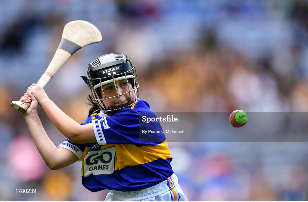 18 August 2019; Caoimhe McKee, Scoil na Caílín, Castleblayney, Monaghan, representing Tipperary, during the INTO Cumann na mBunscol GAA Respect Exhibition Go Games prior to the GAA Hurling All-Ireland Senior Championship Final match between Kilkenny and Tipperary at Croke Park in Dublin. Photo by Piaras Ó Mídheach/Sportsfile