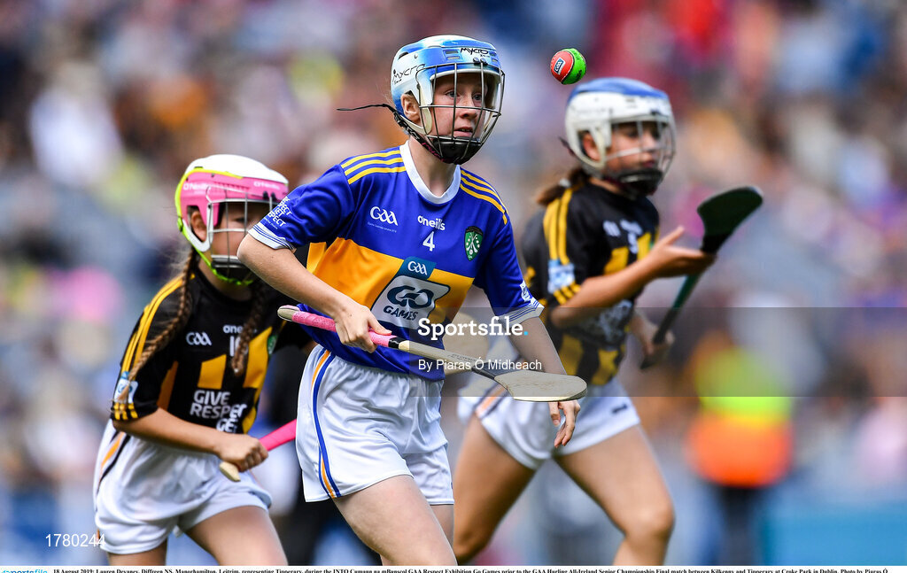18 August 2019; Lauren Devaney, Diffreen NS, Manorhamilton, Leitrim, representing Tipperary, during the INTO Cumann na mBunscol GAA Respect Exhibition Go Games prior to the GAA Hurling All-Ireland Senior Championship Final match between Kilkenny and Tipperary at Croke Park in Dublin. Photo by Piaras Ó Mídheach/Sportsfile