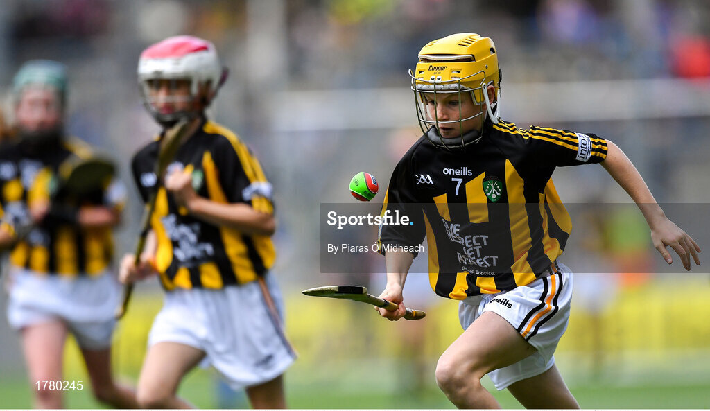 18 August 2019; Lucy Sheridan, St Kevin’s NS, Dunleer, Louth, representing Kilkenny, during the INTO Cumann na mBunscol GAA Respect Exhibition Go Games prior to the GAA Hurling All-Ireland Senior Championship Final match between Kilkenny and Tipperary at Croke Park in Dublin. Photo by Piaras Ó Mídheach/Sportsfile