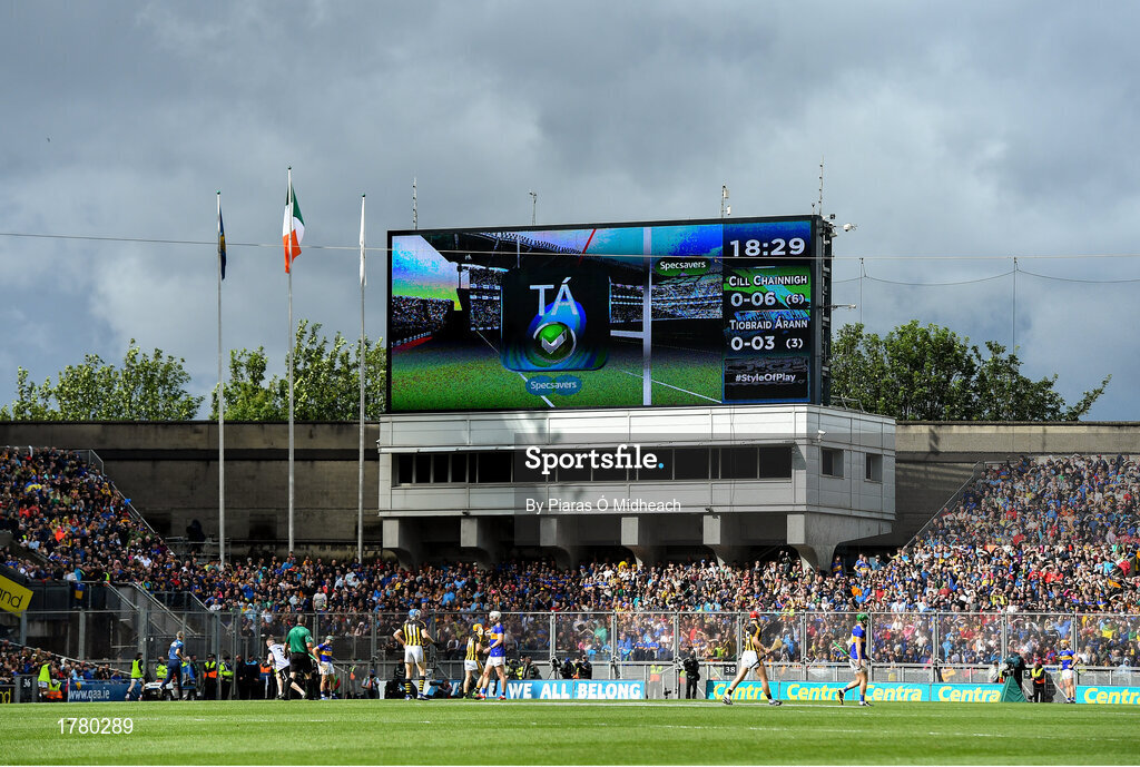 18 August 2019; Hawkeye displays the result of a ruling that Tipperary goalkeeper Brian Hogan carried the ball over the bar, for a point, from a shot by John Donnelly of Kilkenny during the GAA Hurling All-Ireland Senior Championship Final match between Kilkenny and Tipperary at Croke Park in Dublin. Photo by Piaras Ó Mídheach/Sportsfile