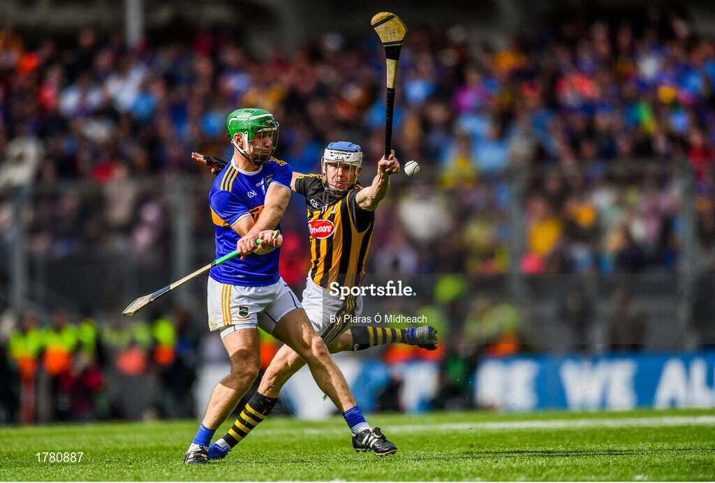 18 August 2019; Noel McGrath of Tipperary in action against TJ Reid of Kilkenny during the GAA Hurling All-Ireland Senior Championship Final match between Kilkenny and Tipperary at Croke Park in Dublin. Photo by Piaras Ó Mídheach/Sportsfile