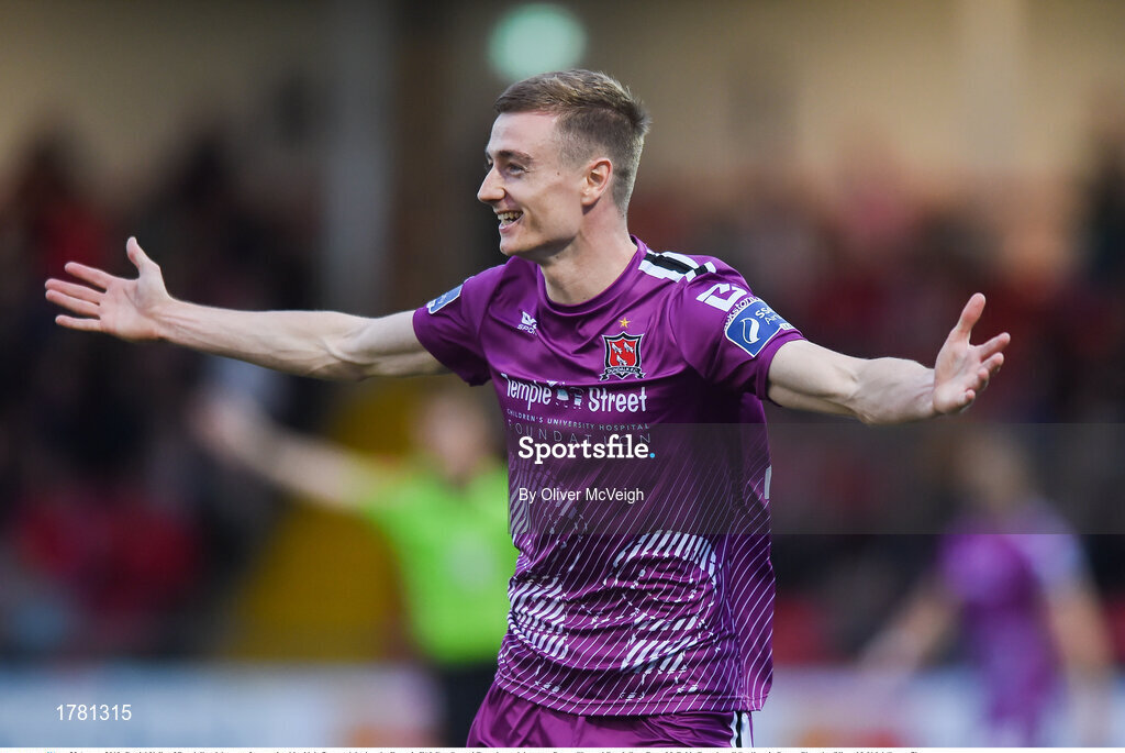 23 August 2019; Daniel Kelly of Dundalk celebrates after scoring his side's first goal during the Extra.ie FAI Cup Second Round match between Derry City and Dundalk at Ryan McBride Brandywell Stadium in Derry. Photo by Oliver McVeigh/Sportsfile