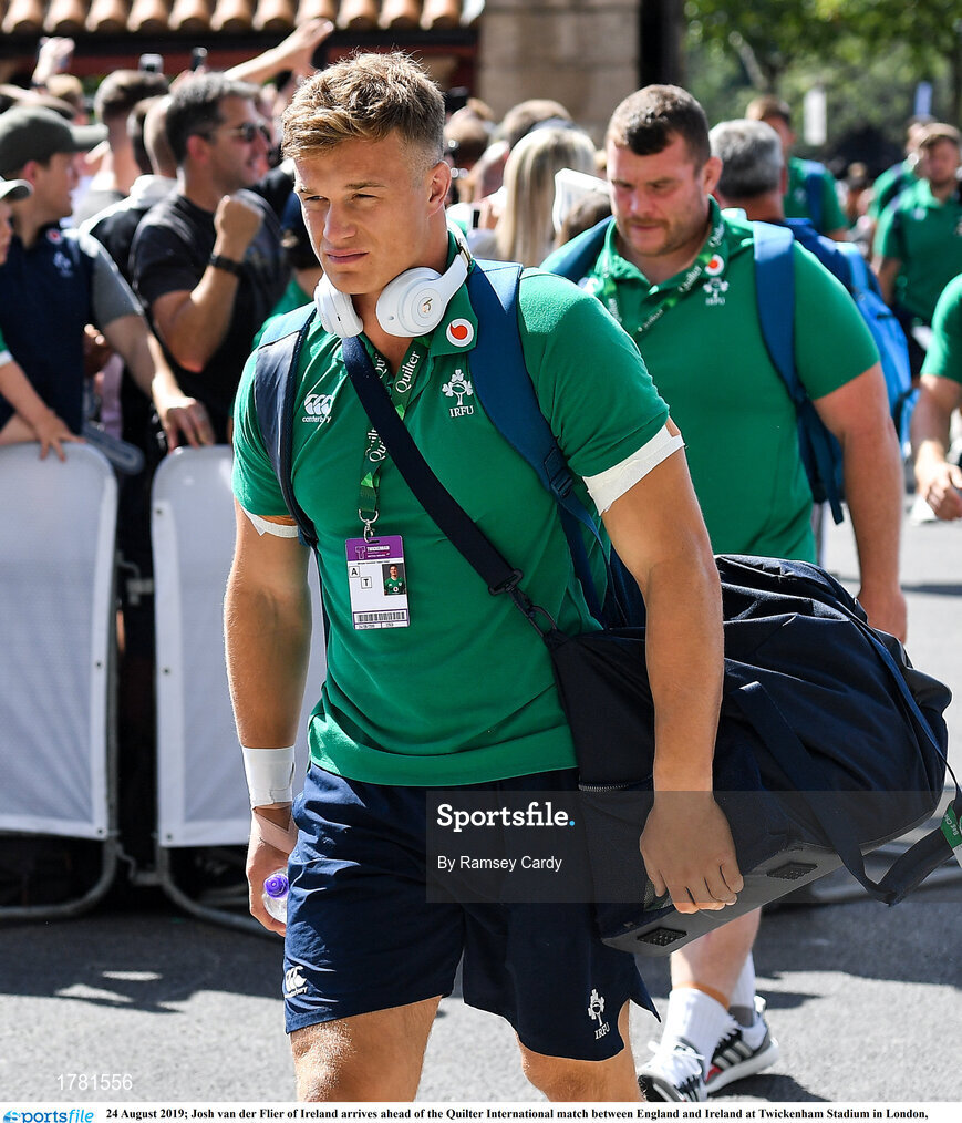 24 August 2019; Josh van der Flier of Ireland arrives ahead of the Quilter International match between England and Ireland at Twickenham Stadium in London, England. Photo by Ramsey Cardy/Sportsfile